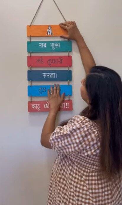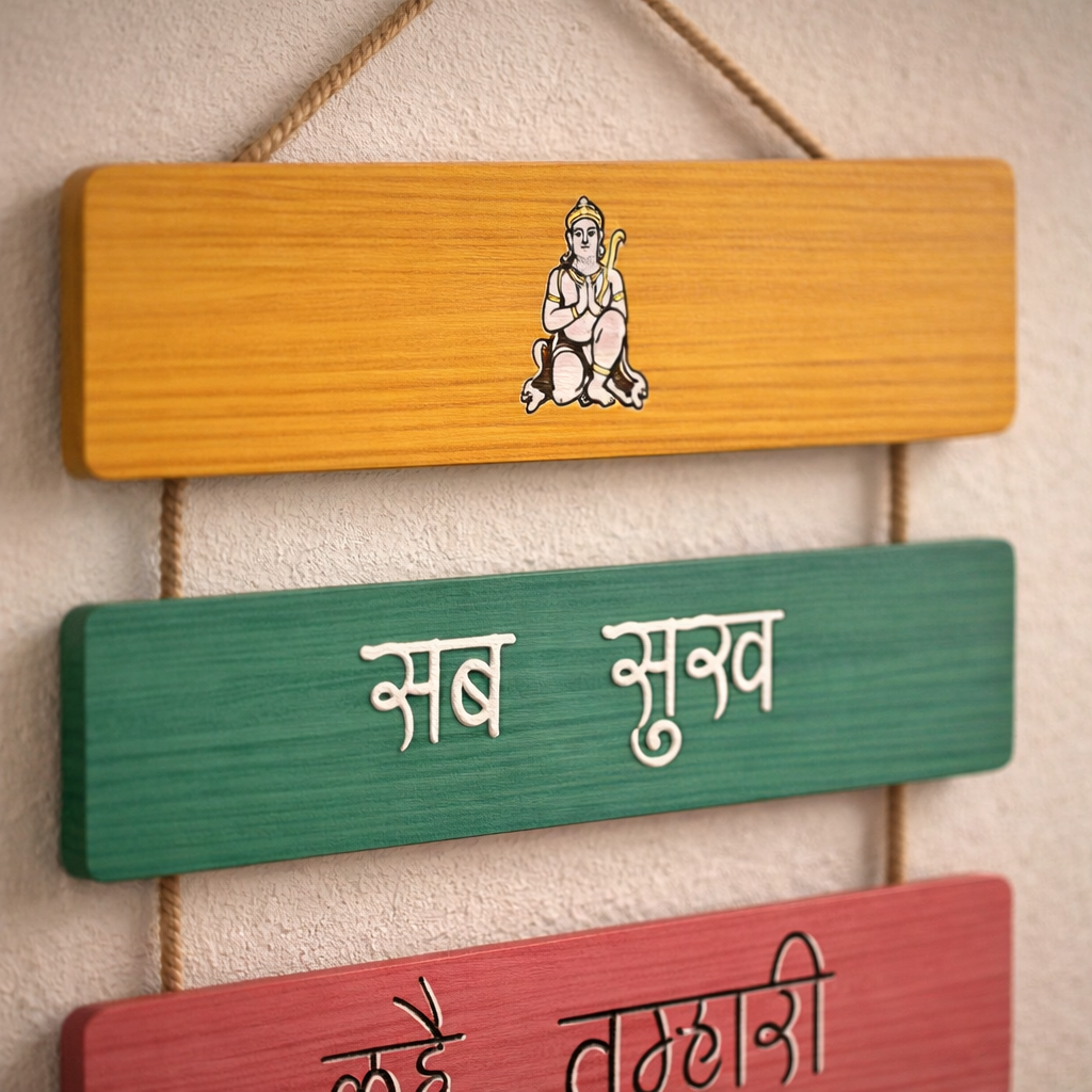 Create a calm, positive atmosphere in your home with this minimal spiritual mantra hanging, designed to bring peace, focus, and Indian traditional energy into modern living spaces.